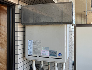 約14年使用の給湯器をエコジョーズに交換!開口部が近いため排気カバーも取付け 横浜市港北区