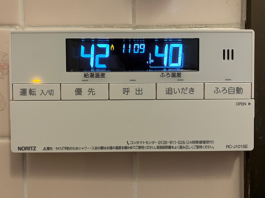 既存の給湯器は「ノーリツ」の機種で、約15年使用しており、