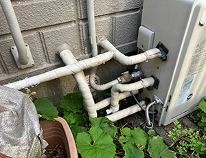 給湯器の置き方の変更に伴って、給湯器に繋がる配管をかなり変えました。