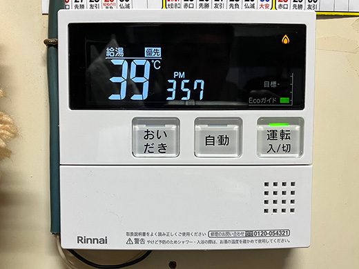 既存の給湯器は「リンナイ」の機種で、約11年使用しており、