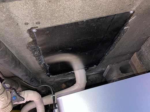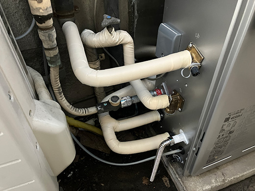 また、今回は給湯器の交換と同時に、浴室の追い焚き配管を「2つ穴」から「1つ穴」へ変更するご提案をいたしました。