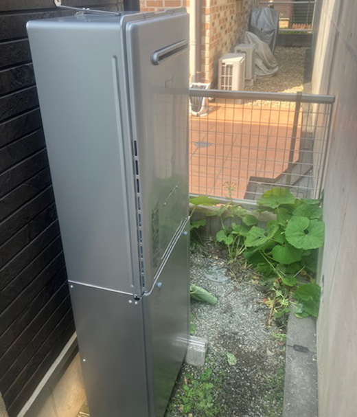 後日、納品された新しい給湯器は、これまでと同じように使える「リンナイ」の同等機種(後継機種)を選定しました。